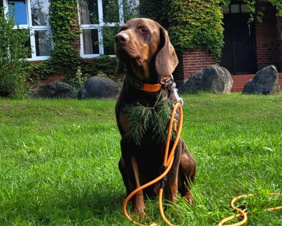 Pies w rękach myśliwych, pracujemy z nim na postrzalkach. Pięknie dochodzi ranioną zwierzynę, naturalny oszczekiwacz, z osiągnięciami na wystawach międzynarodowych, krajowych i konkursach psów myśliwskich (m.in.: CWC, dyplom I stopnia z konkursu dla tropowców). Jest psem bardzo energicznym, radosnym, bardzo mocno przywiązanym do człowieka.