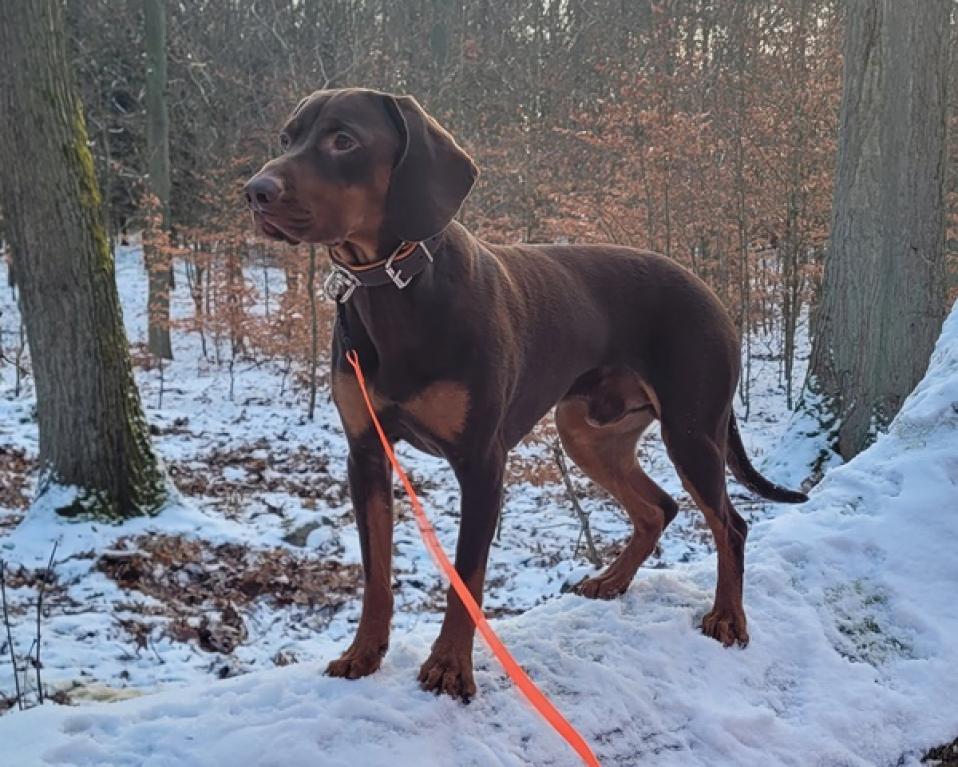 Pies w rękach myśliwych, pracujemy z nim na postrzalkach. Pięknie dochodzi ranioną zwierzynę, naturalny oszczekiwacz, z osiągnięciami na wystawach międzynarodowych, krajowych i konkursach psów myśliwskich (m.in.: CWC, dyplom I stopnia z konkursu dla tropowców). Jest psem bardzo energicznym, radosnym, bardzo mocno przywiązanym do człowieka.